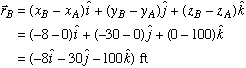 Recognizing the equality of corresponding terms in the right sides of the two equations and the fact that point B is in xy plane, we can write