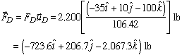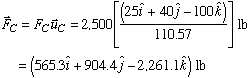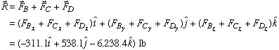 The unit vector indicates that the resultant force is very close to being completely in the -z direction. To check the validity of this result, we can go back and take a look at the individual forces found previously. When we look at the three forces, we find that not only all three have a negative z component, but that the z component in each case is much larger that the other two.