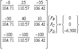 Alternative 1:Let's consider the case of adjusting the tension in the cables with the help of turnbuckles. Also let us assume that a resultant force of 6,300 lb is acceptable in this case. Therefore, we can proceed as follows. The intent is to have the resultant force vector be defined as