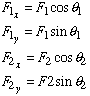 Each force vector can be represented in terms of its two vectors components along x, y axes