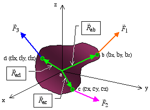 Example 5: Forces F1, F2, and F3 are acting at points b, c, and d, respectively. Determine the resultant moment produced by these forces about point a.