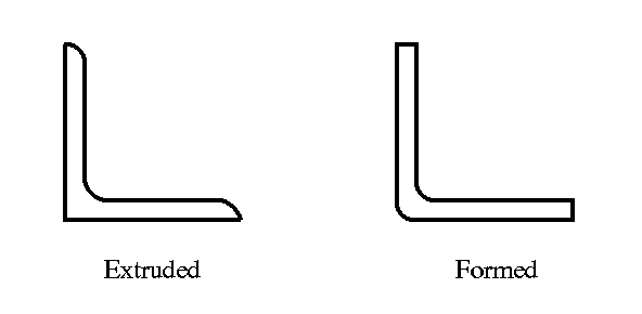 A way to recognize extruded sections is by looking at the corner locations. The outside corners are sharp while the inside corners are rounded with a desired fillet radius. In a formed section, the inside and outside corners are rounded, and typically concentric.