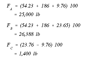 Start by summing the vertical and horizontal forces and the moments about stringer A using the view shown in the figure below.