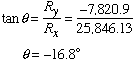 Since q is measured positive in the counter clockwise direction from x axis, the force resultant is, therefore, directed below the x axis as shown below.