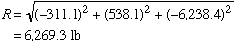 The unit vector indicates that the resultant force is very close to being completely in the -z direction. To check the validity of this result, we can go back and take a look at the individual forces found previously. When we look at the three forces, we find that not only all three have a negative z component, but that the z component in each case is much larger that the other two.