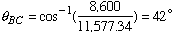 where represents the angle between vectors and . Using the position vectors along AB and AC we find the desired angle as
