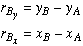 Recognizing the equality of corresponding terms in the right sides of the two equations and the fact that point B is in xy plane, we can write