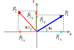 Each force vector can be represented in terms of its two vectors components along x, y axes