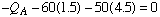 Negative sign indicates the direction of QA is opposite to that shown in the free-body diagram. Now we proceed with solving the two reaction forces. Using the equilibrium of forces in the x direction gives
